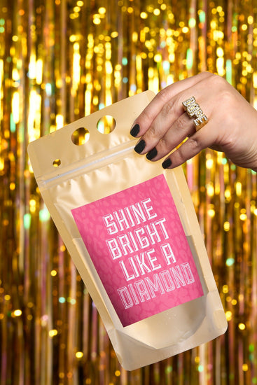 Each pouch is 5” wide and 9” tall. It has two large holes for easy carrying and two small holes for your straw. Pouches are re-sealable are re-usable. Holds up to 16oz. All labels are waterproof!