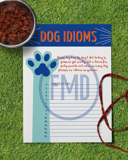 Dog Idioms: Set a time for ninety seconds and name as many dog phrases or idioms as you ca!