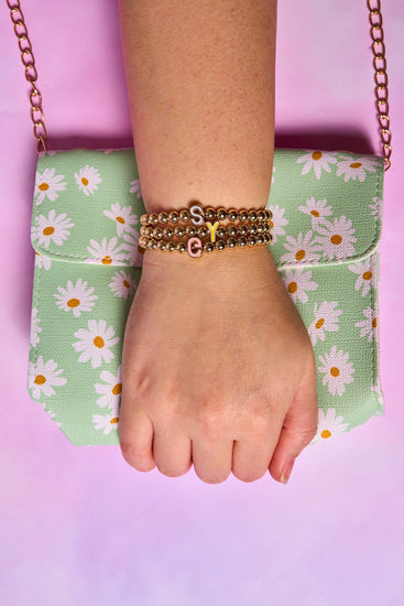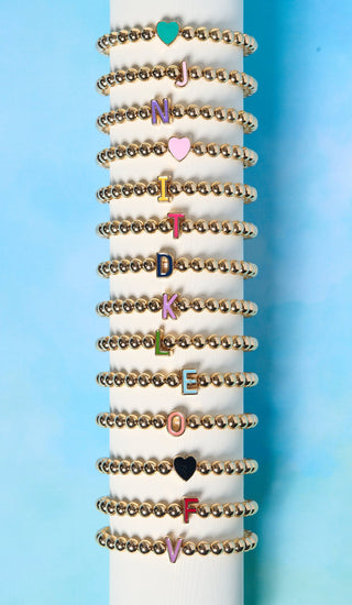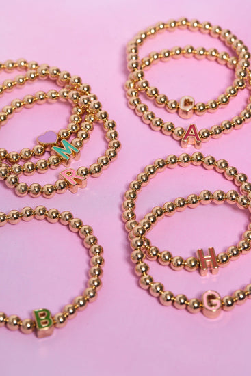Initial gold bracelets perfect for stacking or mixing and matching with other jewelry! It also is the perfect personalized gift for the monogram lover in your life.