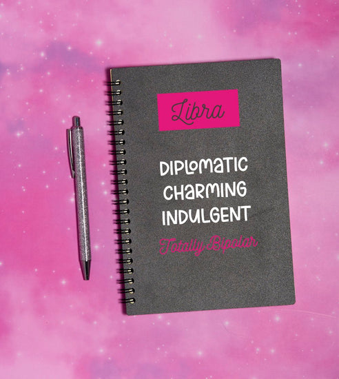 Crafted with the charm of a Libra and the occasional bipolar tendencies to match, this notebook isn't just for notes—it's your personal mediator, diplomat, and cheerleader all rolled into one. So, whether you're negotiating your way out of a tricky situation, analyzing every angle of a decision, or simply doodling your way through a brainstorm, this notebook has got your back.
