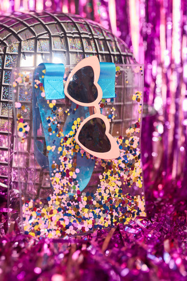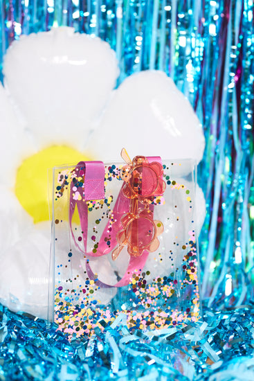 Our small but mighty glitter bag is perfect to carry all of your essentials. Confetti glitter is set inside the plastic and moves around as you shake the bag!