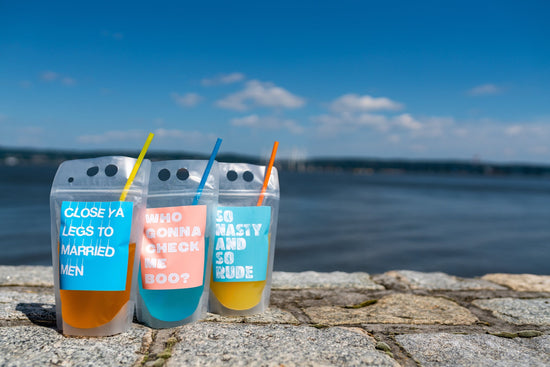 Adult boozy drink pouches inspired by none other than the iconic women of Real Housewives of Atlanta. No glass in the pool or by the beach? No problem! Grab your pool float and your favorite beverage and bring this pouch in the water with you! Let’s channel our inner Porsha Williams and grab that Henessey!
